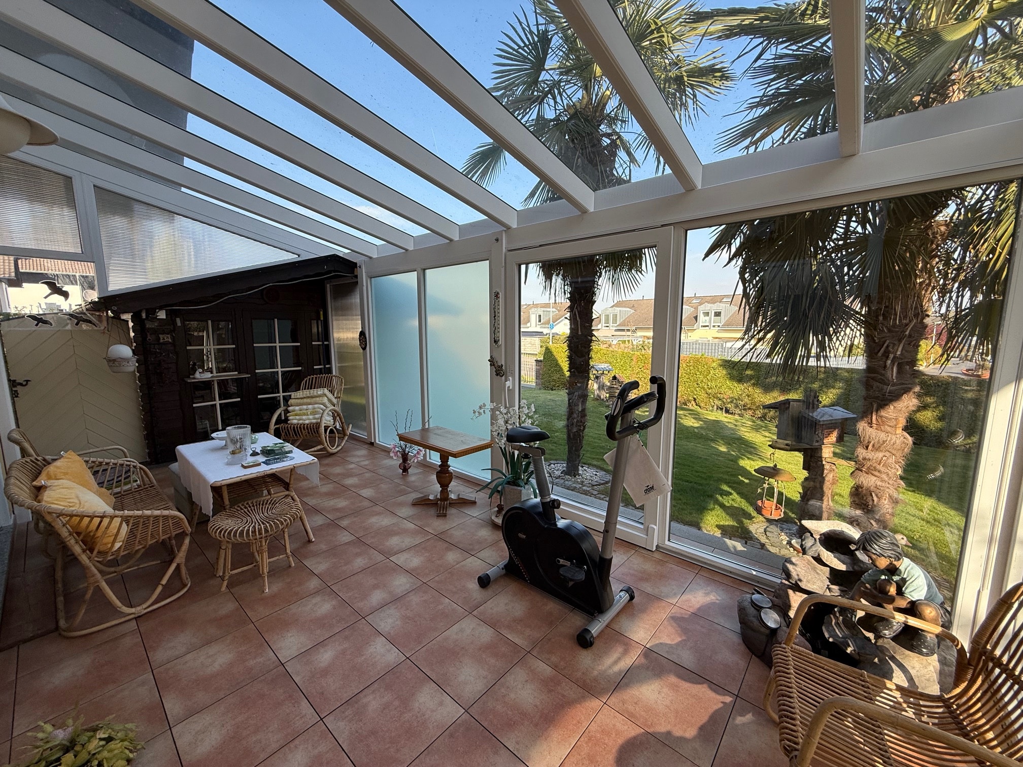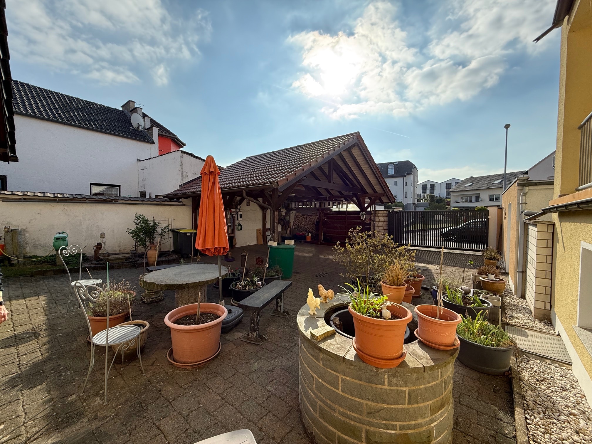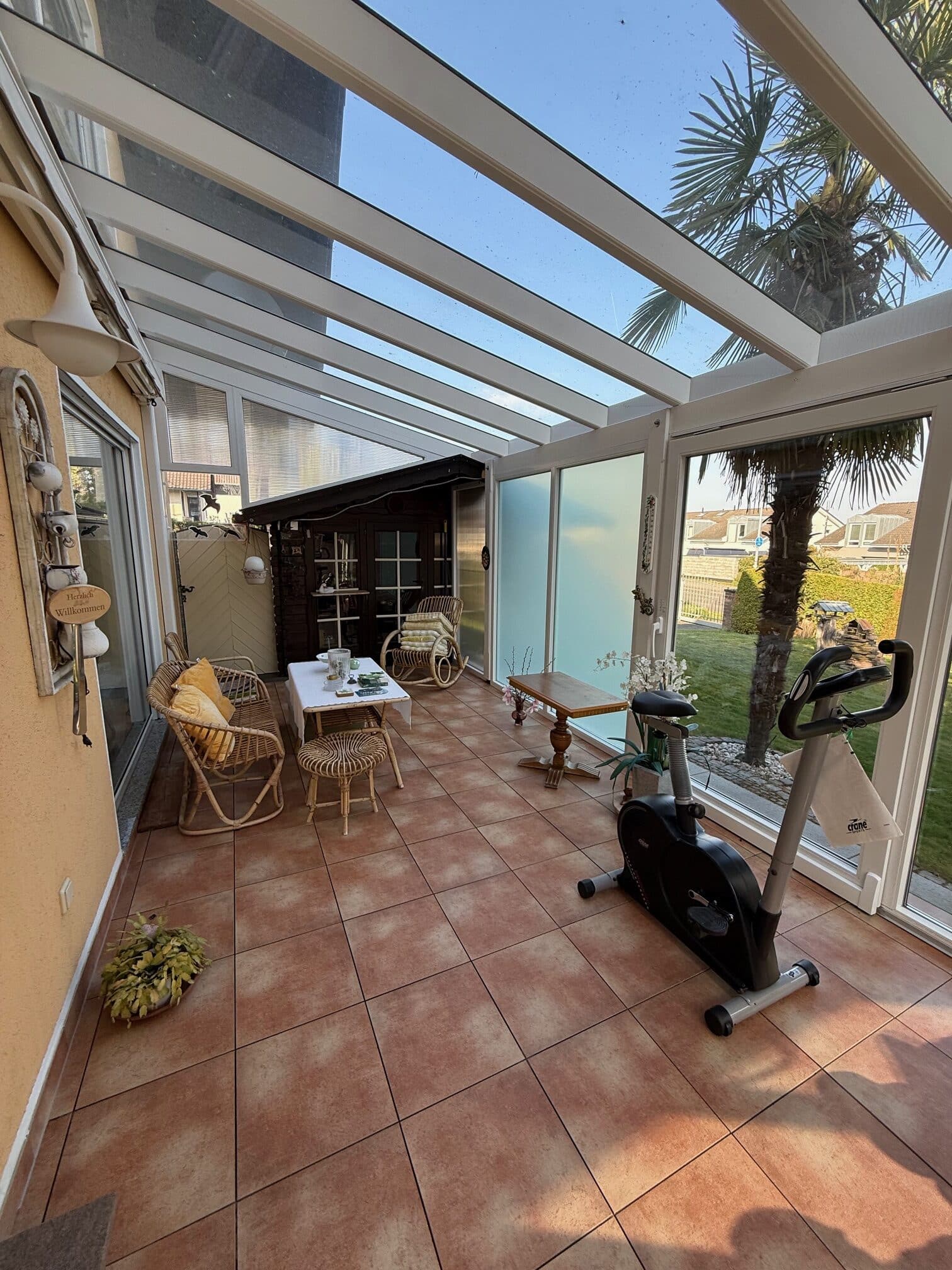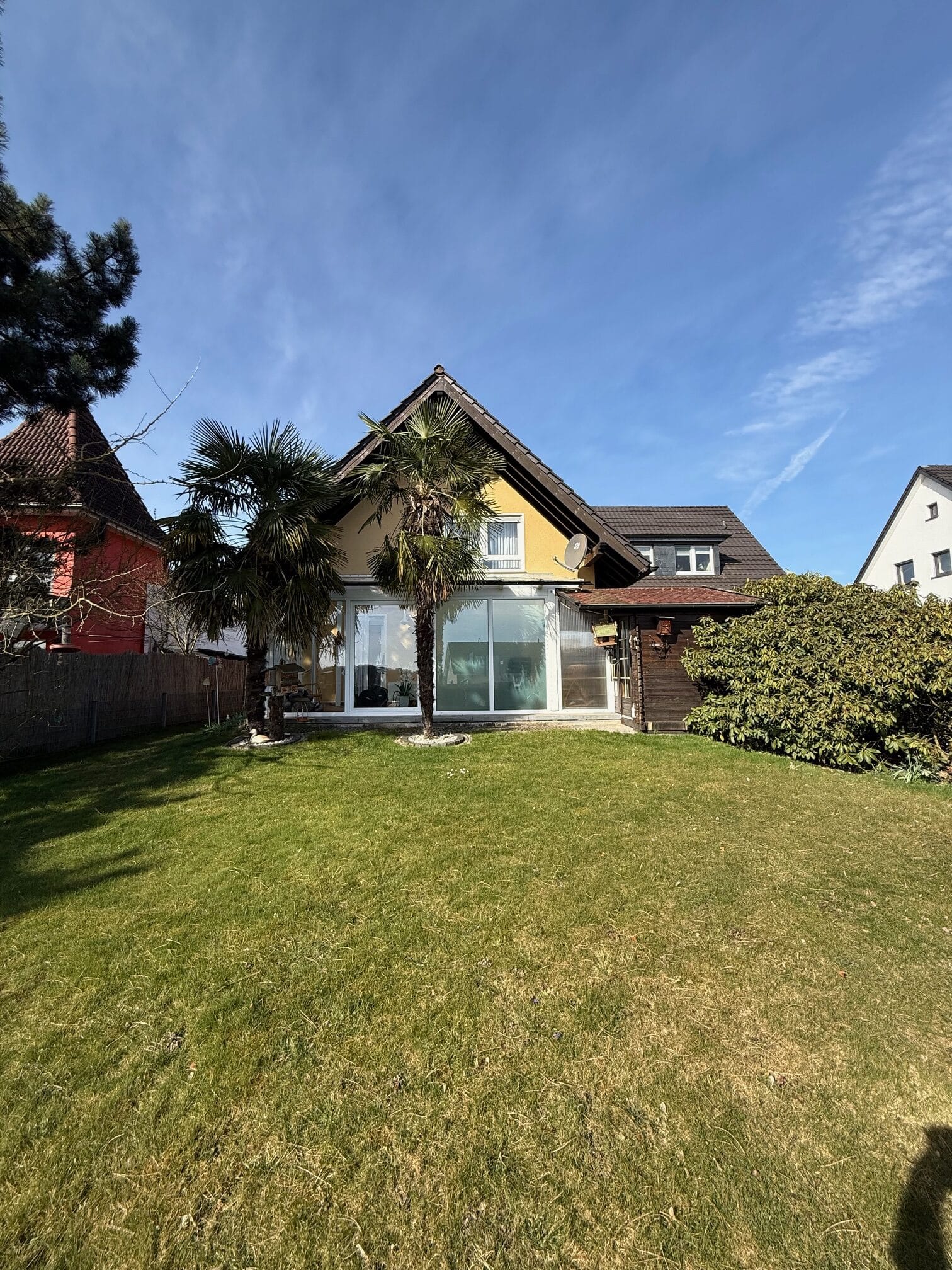 GuEs handelt sich hier um ein 1994 erbautes und links an das Haus des Nachbarn angesetztes Einfamilienhaus mit großem Carport und Innenhof. Es wurde zusammen mit dem Haus des Nachbarn in einer Wohnungseigentümergemeinschaft errichtet. Das Grundstück ist daher in einer Teilungsurkunde getrennt. (diese stellen wir Ihnen auf Wunsch gerne zur Verfügung und beantworten Ihre Fragen hierzu). Das Haus selbst ist voll unterkellert. Erst im Jahr 2011 wurde noch ein großer Wintergarten angebaut. Dieser befindet sich in Ostausrichtung. Die Beheizung des Hauses erfolgt über eine Ölzentralheizung incl. Warmwasseraufbereitung (Bj. Hzg. 1994). Im Jahr 2024 wurde auch eine PV-Anlage mit Wallbox installiert.